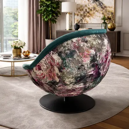 Die runde, umschließende Form zitiert ikonische Lounge-Designs der Vergangenheit und übersetzt sie in eine moderne, luxuriöse Formensprache. Ohne harte Kanten, mit klaren Linien und weicher Silhouette – ein Möbelstück mit Charakter und Ruhe, das alle Blicke auf sich zieht, Atmosphäre schafft und durch hochwertige Verarbeitung begeistert.